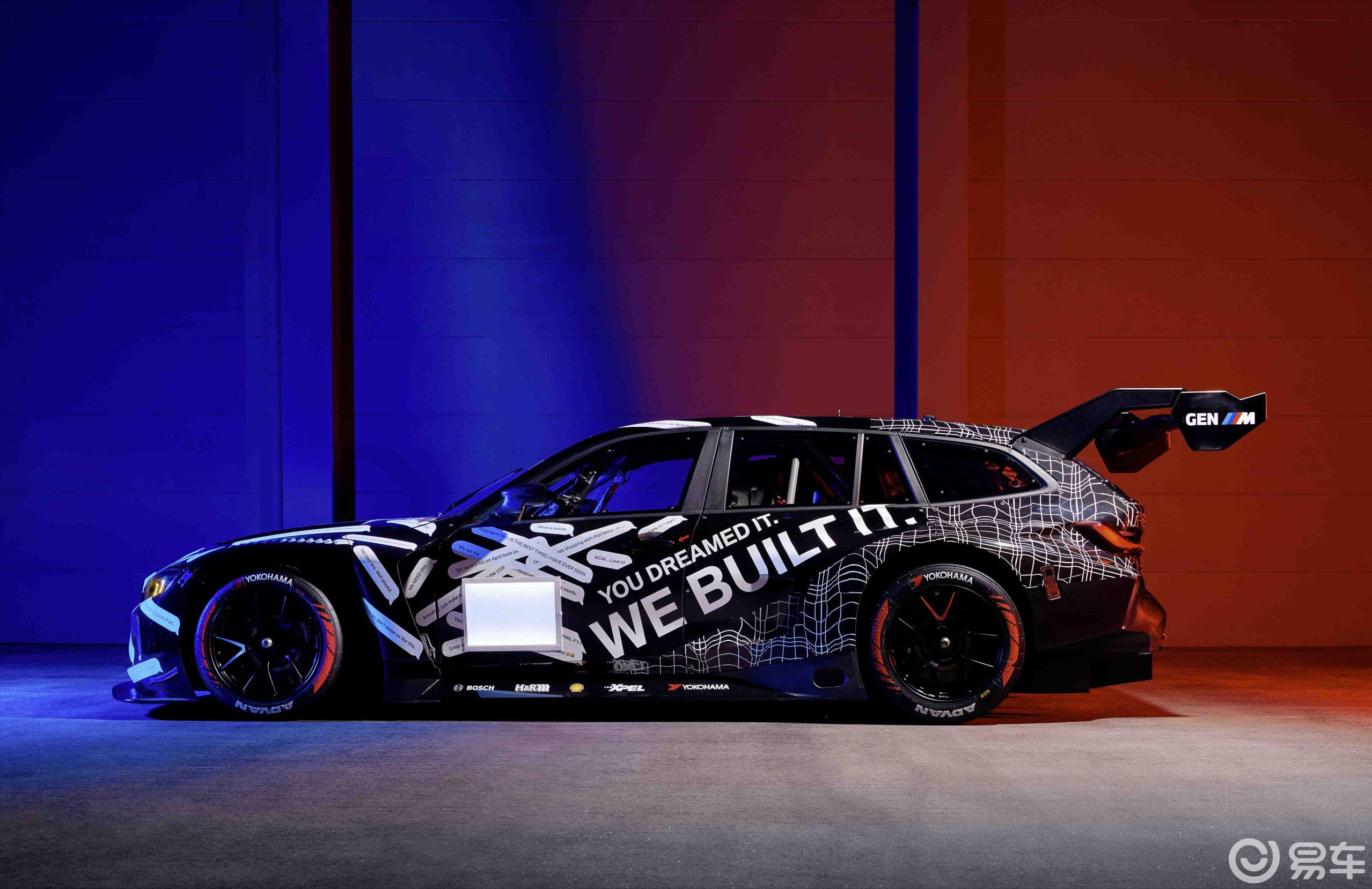 再来是外观尺寸,M3 Touring比M4 GT3 Evo长一些,全车采用高性能赛车车身(碳纤维)、车头和碰撞部分采用和宝马M4 GT3 EVO相同的架构 ,和M4 GT4 EVO一样的座椅,同时还往前移一些,进一步加强驾驶员的坐姿舒适。和M4 GT3 EVO不同的是,M3 Touring将大尾翼后移进一步降低空气阻力、维持整体的下压力,避免车顶产生空气动力往上升。